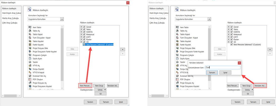 MapInfo programını daha konforlu kullanmak için kendimize özel bir sekme oluşturabilir ve içerisine istediğiniz seçenekleri ekleyerek düzenleyebiliriz.