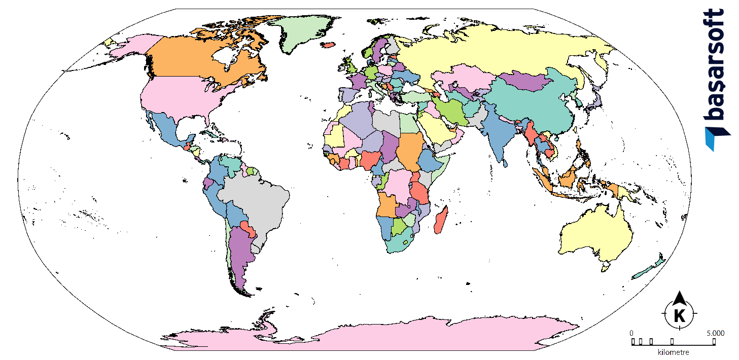 Oluşturulan bu dilsiz harita çıktı penceresine aktarılarak istenilen boyut, ölçek vs. ayarlanarak çıktısı alınabilir. Çıktı penceresi işlemleri için aşağıdaki videodan yararlanılabilir.